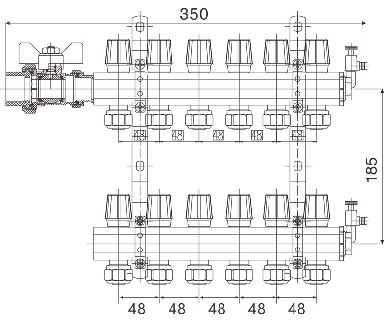 分水器常用于:地板采暖系統中的,分集水器管理若干的