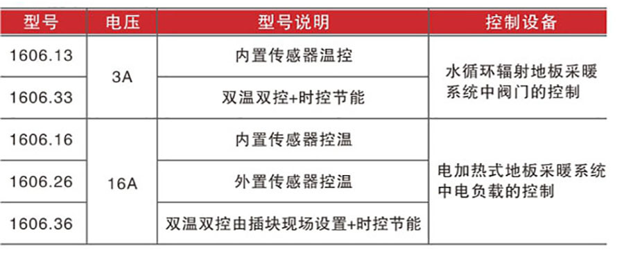 系列國際通用型采暖電子溫控器,采用直接墻面安裝,溫度范圍5- 40C。LED指示燈亮時表示正在加熱。適用于采暖(設備)系統的溫度自動調節控制。具備雙溫度傳感技術,為舒適、安全、節能的高標準要求。